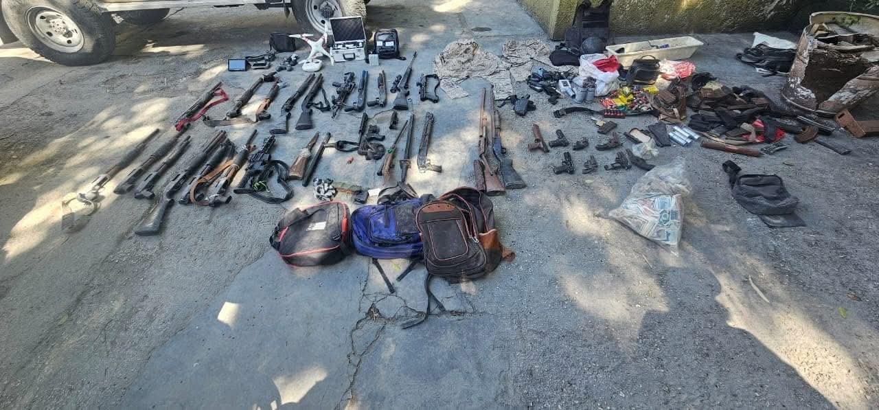 Les forces de l’ordre ont saisi divers équipements militaires et armes : cinq drones, huit pistolets, dix-huit fusils de calibre 12, trois AR15, un fusil de calibre 22 et un stock conséquent de munitions. Des uniformes de l’UDMO arborant les grades de l’Inspection générale et plusieurs gilets pare-balles ont aussi été récupérés par la police.